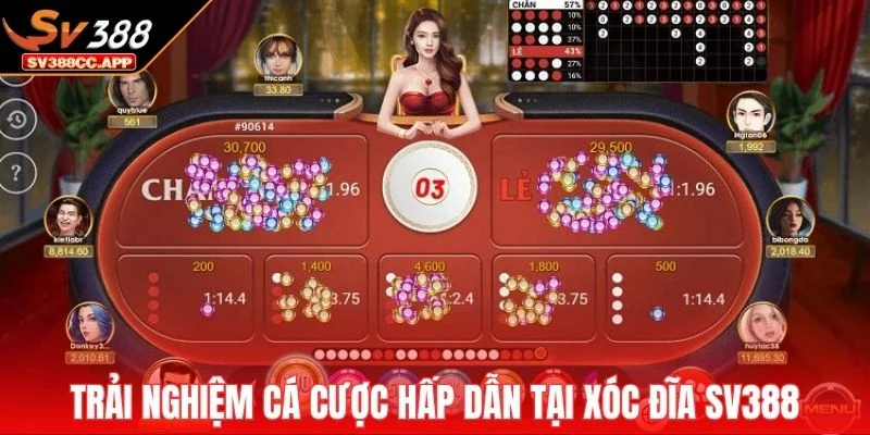 Xóc Đĩa SV388 mang đến không khí sôi động như đang tham gia tại một sòng bài thực thụ. Giao diện mô phỏng bàn xóc chuyên nghiệp với dealer thật, ánh sáng chuẩn và âm thanh rõ nét từng tiếng rung đĩa. Người chơi có thể quan sát toàn bộ quá trình xóc, đặt cược và mở bát trực tiếp theo thời gian thực.